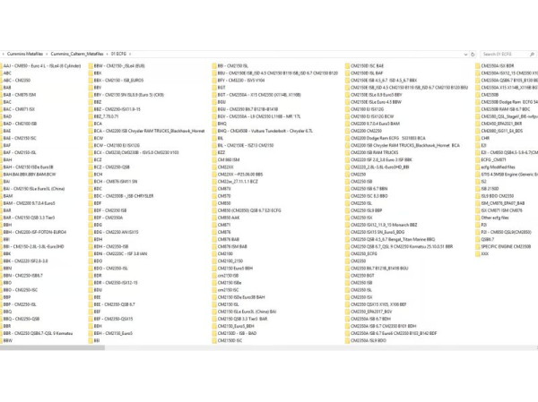 Иметь доступ к мета-базе — знать, какие калибровки существуют для различных моделей двигателей Cummins, варианты ECM, EGP parâmetros, зависимости файлов конфигурации.