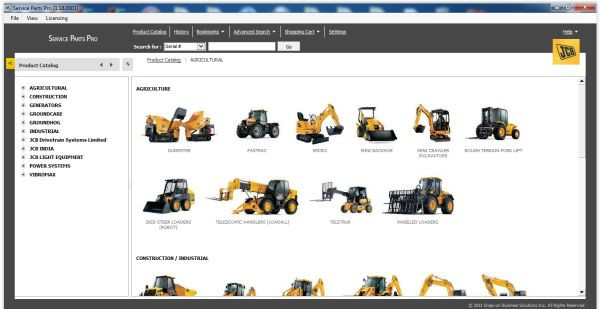 Программа охватывает весь модельный ряд строительной, сельскохозяйственной и промышленной техники JCB, включая: