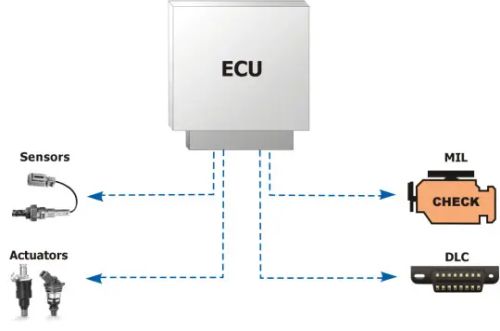 В систему управления мотором (ECU - Electronic Controlled Uni) включены электронные, а также электрические компоненты: в нее входят датчики, реле, а также исполнительные механизмы. Их работа осуществляется совместно, это обеспечивает блок управления мотором параметрами, которые необходимы, чтобы управлять впрыском и т.д. Задействуются контроллеры разных типов, состоящие, в основном, из термопар, температуры сопротивления (RTD), а также Холла.