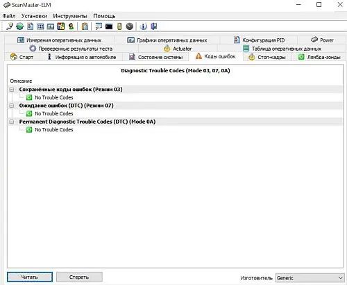 Во вкладке Коды ошибок буду отображаться коды с расшифровкой, которые определились программным обеспечением.