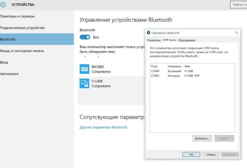5. Теперь нужно включить на ноутбуке Bluetooth, выполняем сопряжение с V-Link. Пароль будет стоять по умолчанию 1234 или 0000.