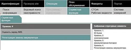 - Уровень 1: Кузов -> Уровень 2: Электропитание -> Уровень 3: Аккумуляторная батарея -> Уровень 4: Регистрация замены АКБ.