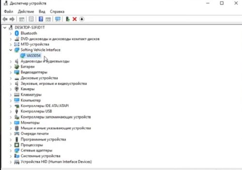 Мы видим адаптер VAS 5054, который определяется именно как адаптер. VAS 5054, никак универсальное устройство. Поэтому благодаря этому функционалу программ будет полный.