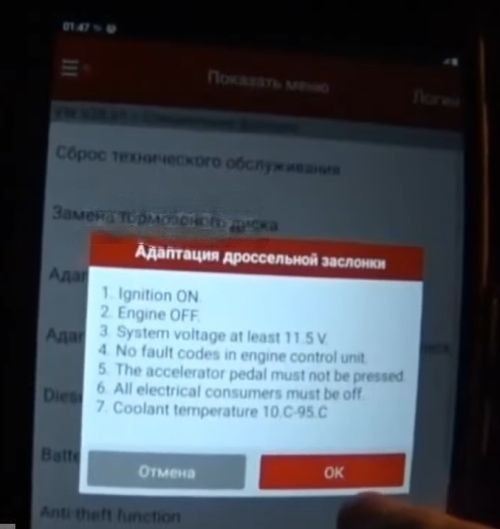 Адаптация дроссельной заслонки - это сложный процесс, который проходит по 60 каналам. Это гарантирует, что заслонка будет работать правильно.