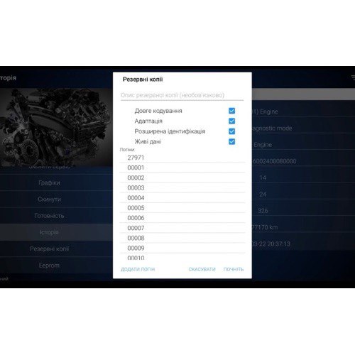 Процесс создания резервной копии достаточно прост. Пользователю необходимо ввести название копии, например "Audi", после чего OBDELEVEN начнет сохранять все настройки, кодировки и параметры в реальном времени в специальный файл, известный как бекап.