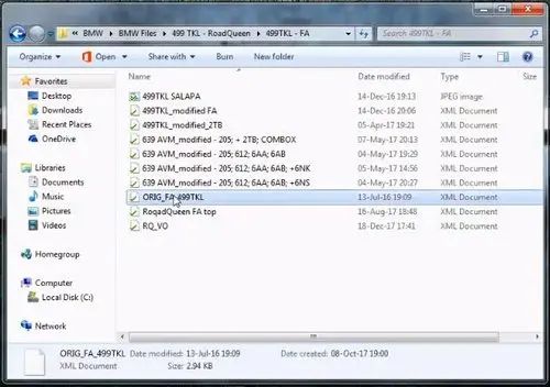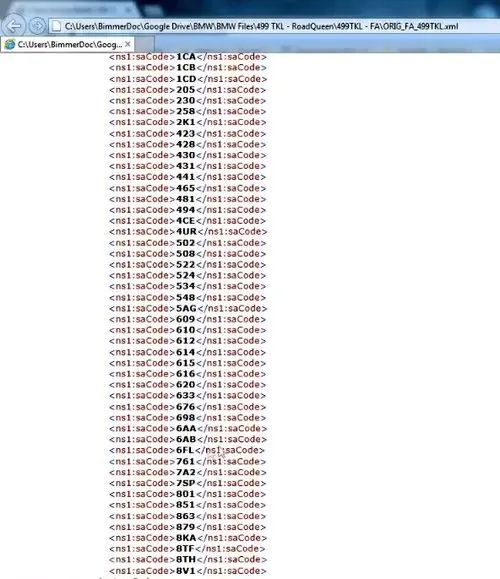 Потом я покажу в E-Sys, как проверить, какая у вас записана комплектация, чтобы было видно наглядно рассмотрим оригинальную комплектацию моего автомобиля вот у нас получается xml файлик, когда вы считываете его E-Sys и он выглядит вот таким образом. То есть много разных циферок, буковок и так далее.