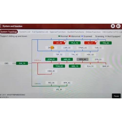 Проведение процесса Smart Scan автоматически просматривает все блоки, подключенные к этим шинам, обеспечивая полную картину текущего состояния автомобиля.