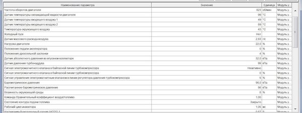 И в завершение продемонстрируем примерный датастрим параметров ЭБУ мотора, которые есть возможность вывести на экран: