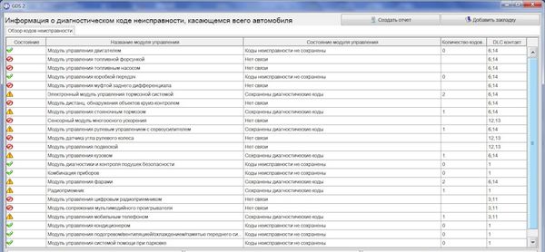 Диагностируются все системы машины на наличие ошибок