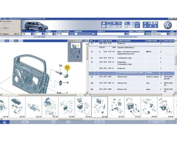 - ETKA - Электронный каталог запчастей для автомобилей VAG, позволяющий искать запчасти по VIN, артикулу или модели автомобиля. Обновляется регулярно, обеспечивая актуальность данных по всем моделям VAG.