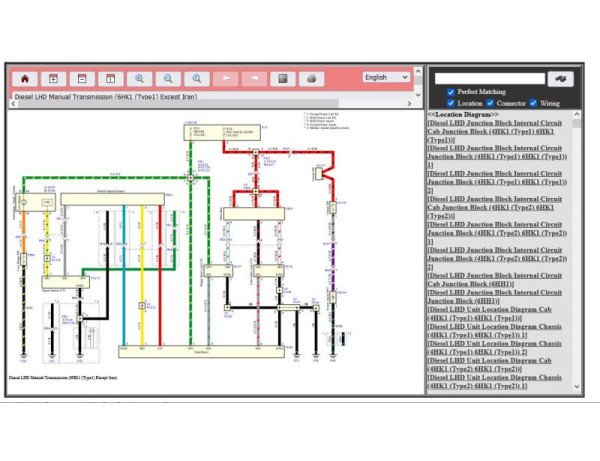 - Полные и детализированные схемы электропроводки, которые помогают специалистам в диагностике и ремонте электрических систем автомобилей ISUZU.