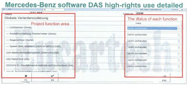 DAS: Старая программа для диагностики Mercedes-Benz, интегрированная в Xentry. Работает с моделями, выпущенными примерно до 2010 года.