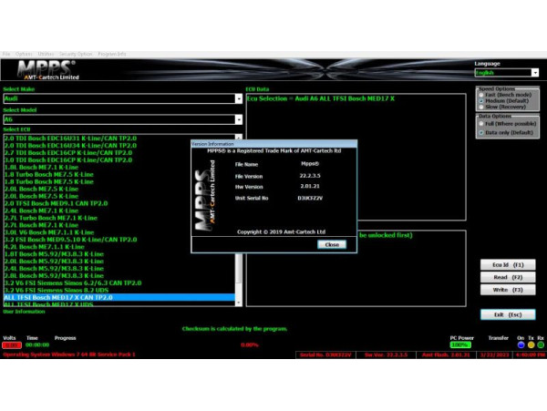 - Проверьте наличие обновлений для MPPS v22, возможно, ваш ЭБУ поддерживается только в новой версии.