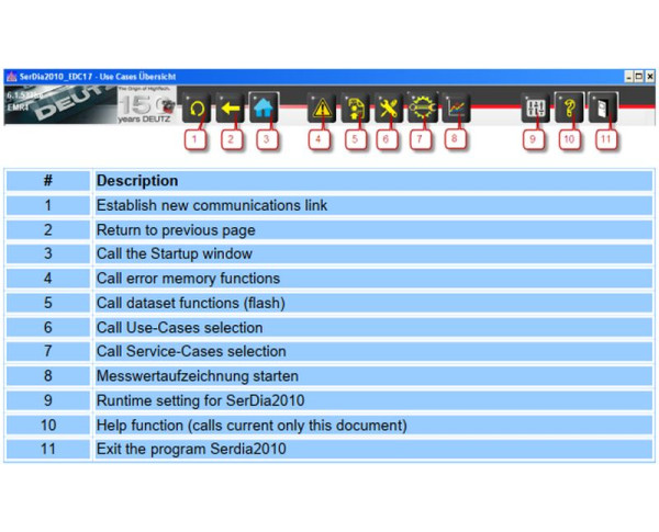 | ВидУстановка программы | Марка автоDeutz | НазначениеДиагностика, программирование, кодирование |
