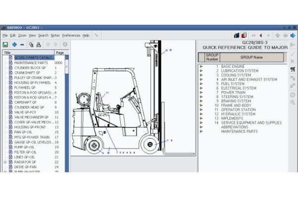 Doosan (Daewoo) Forklift EPC 2010 — это специализированное программное обеспечение для диагностики, обслуживания и ремонта вилочных погрузчиков Doosan (ранее Daewoo) различных моделей. Программа представляет собой электронный каталог запчастей (EPC), который содержит полную информацию о деталях и узлах погрузчиков, включая схемы, номера деталей, и описание процедур ремонта.
