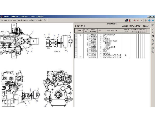 Программа включает подробный каталог запчастей для вилочных погрузчиков Doosan (и ранее Daewoo), который помогает быстро найти нужные детали по номеру или описанию. Каждый элемент каталога снабжен фотографиями и схемами для более легкой идентификации. -