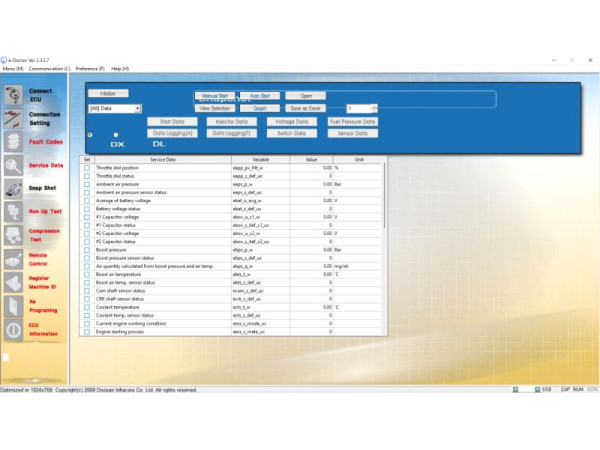 - Интуитивно понятный интерфейс — даже при отсутствии большого опыта работы с программами диагностики, интерфейс Doosan eDoctor позволяет быстро разобраться и начать диагностику.