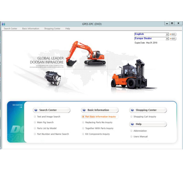 Doosan GPES EPC 2017 – это электронный каталог запасных частей для строительной, дорожной и промышленной техники Doosan. Программа позволяет находить оригинальные запчасти по модели техники, серийному номеру или VIN-коду, а также просматривать иллюстрированные схемы узлов и агрегатов.