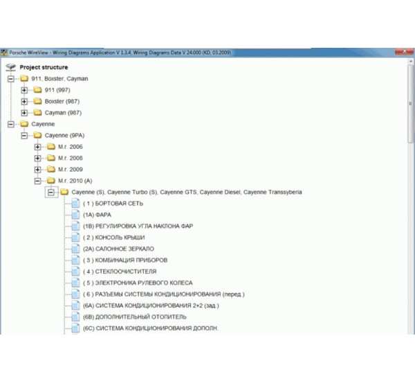 Программа предназначена для удобного поиска схем, трассировки проводки, выявления неисправностей и ремонта электрических систем автомобилей Porsche.