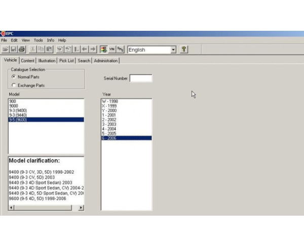 Saab EPC 2010 (Electronic Parts Catalog) – это электронный каталог запасных частей для автомобилей Saab. Программа предназначена для поиска и подбора оригинальных деталей, узлов и компонентов, а также содержит схемы и техническую информацию, необходимую для ремонта и обслуживания автомобилей данной марки.