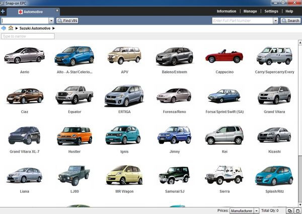 Каталог охватывает практически весь модельный ряд автомобилей Suzuki, включая:
