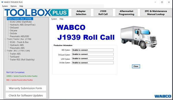 Диагностика: Wabco Toolbox Plus предоставляет полную диагностику для компонентов системы управления торможением, включая диагностические ошибки (DTC) и параметры работы в реальном времени.