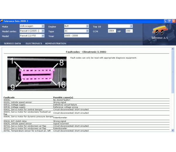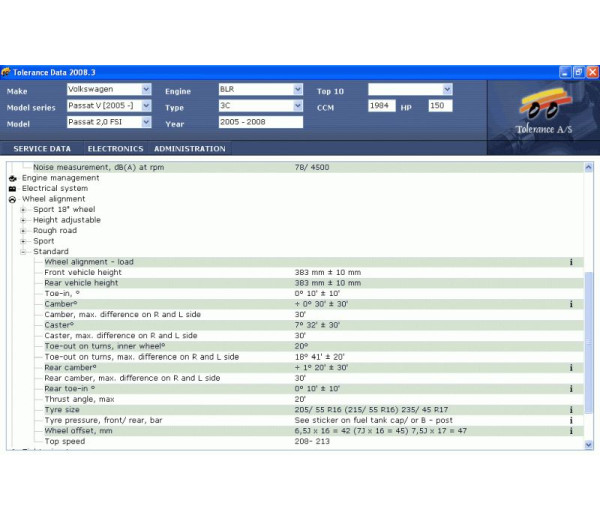 Tolerance Data 2009 — это офлайн-справочник для станций технического обслуживания, предназначенный для быстрой и точной информации по ремонту и техническому обслуживанию легковых автомобилей и легких коммерческих авто. Программа содержит данные по механическим системам, электрическим схемам, моментам затяжки, сервисным интервалам и многому другому.