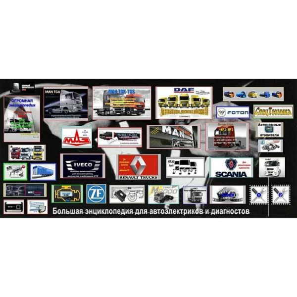 Данный набор представляет собой объединённую базу PDF-файлов, собранных в единый интерфейс, и ориентирован исключительно на диагностику, электрику и электронные системы грузовых автомобилей, автобусов, прицепов и агрегатов. Ниже приведён подробный перечень техники, охватываемой энциклопедией.