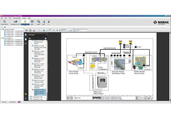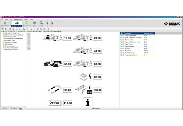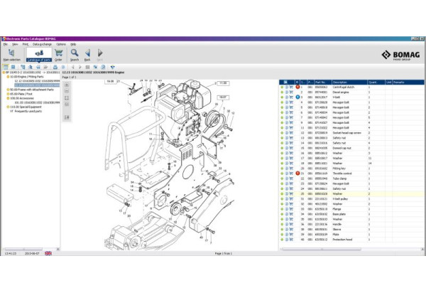BOMAG EPC (Electronic Parts Catalogue) – это официальный электронный каталог оригинальных запчастей для дорожно-строительной техники BOMAG. Он используется для точной идентификации комплектующих, отображения взрыв-схем узлов, просмотра замен и спецификаций деталей.