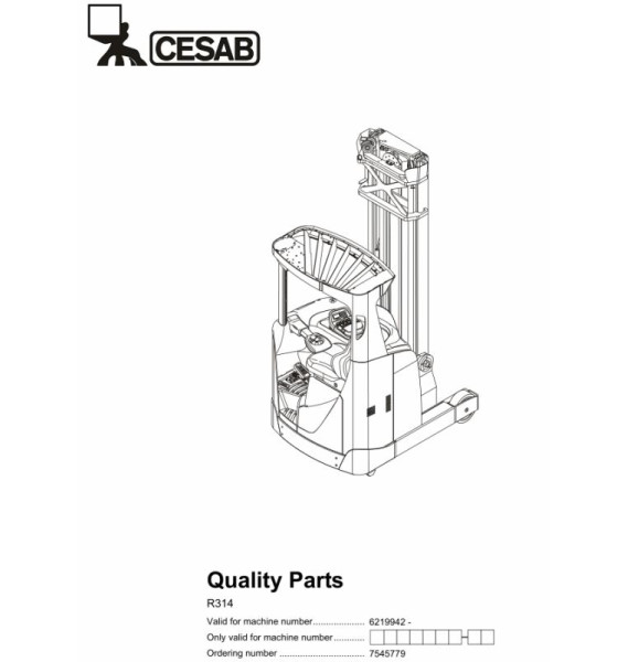 Cesab Forklift EPC — это электронный каталог запчастей, разработанный для обслуживания и ремонта вилочных погрузчиков и складской техники Cesab. Включает в себя полный набор иллюстраций, схем, описаний запчастей, а также дополнительный доступ к сервисным мануалам в формате PDF, что позволяет более точно выполнять ремонтные работы.