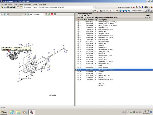 Поиск запчастей для трактора Massey Ferguson с помощью каталога запчастей AGCO Epsilon, чтобы быстро заказать нужные детали для ремонта.