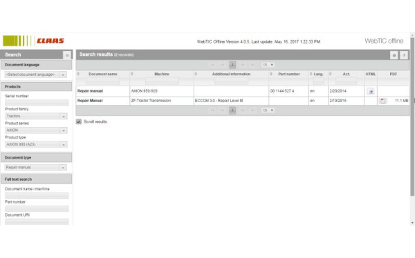 - Предоставление технической информации для обслуживания и ремонта техники CLAAS.