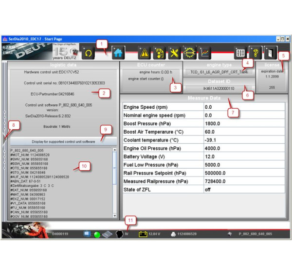 - Поддержка работы с разными поколениями ECU двигателей Deutz.