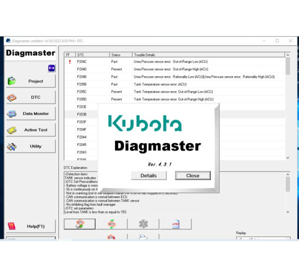 Kubota Diagmaster — это надёжное и точное решение для диагностики современной техники Kubota. Программа позволяет получить полный доступ к системам машины, своевременно выявлять неисправности и производить профессиональное обслуживание в соответствии со стандартами производителя. Обеспечивает эффективную поддержку для тех, кто работает с техникой Kubota в любых условиях эксплуатации.
