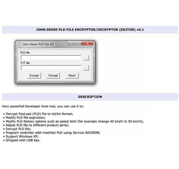 John Deere Payloads Files и Encryptor-Decryptor — незаменимый инструмент для специалистов по диагностике и обслуживанию техники John Deere, позволяющий глубоко настраивать оборудование под конкретные требования.