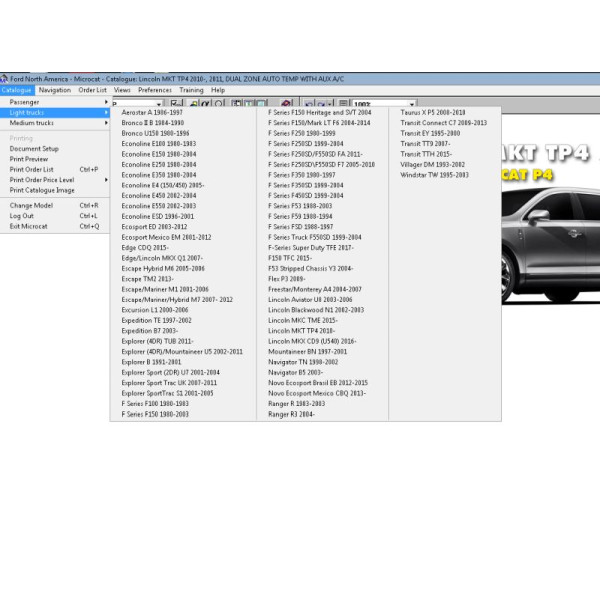 Ford Microcat USA 09.2022 — это официальный электронный каталог запасных частей для автомобилей Ford, предназначенный для рынка Соединённых Штатов Америки. Данное программное обеспечение предоставляет пользователям полный доступ к информации о запасных частях, узлах и агрегатах для широкого модельного ряда автомобилей Ford, включая легковые автомобили, внедорожники, пикапы и коммерческие транспортные средства.