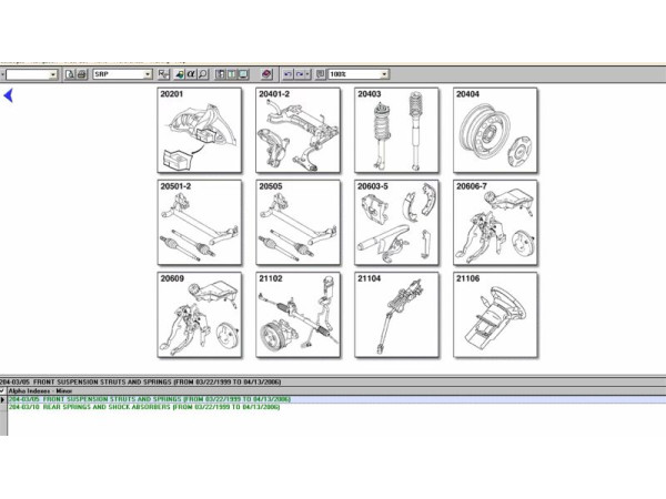 Детальная информация о запчастях: Полные каталожные номера, описания, цены и изображения запасных частей, что облегчает идентификацию и выбор необходимых компонентов.