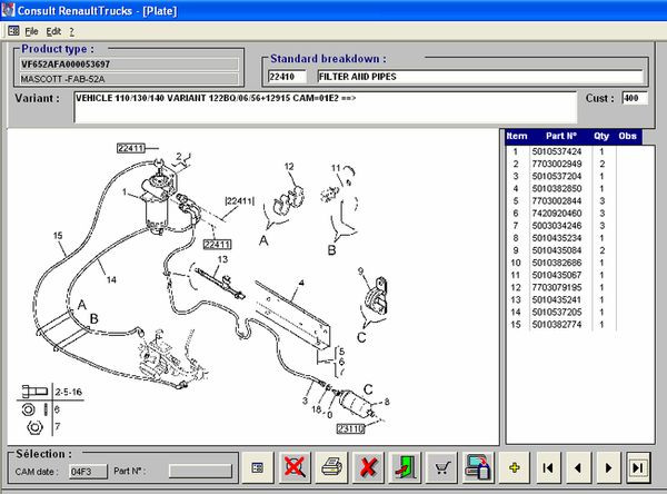 - Полная база данных оригинальных запчастей для всей техники Renault Trucks, включая грузовики, автобусы и спецтехнику.