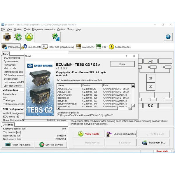 Технические характеристики Установка программы Knorr Bremse ECUtalk