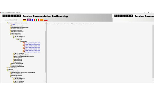 - Ремонт: Подходит для выполнения ремонтов всех типов техники Liebherr с предоставлением всех необходимых схем и инструкций.