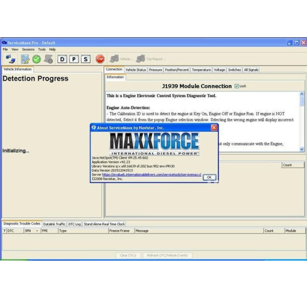 Navistar International ServiceMaxx – это диагностическая программа для работы с двигателями Navistar в грузовиках International. Поддерживает стандарты J1939 и J1708, что позволяет проводить диагностику, настройку параметров и калибровку блоков управления двигателем (ECM).