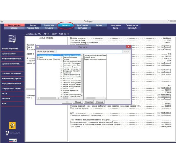 Renault Dialogys 4.90 — незаменимый инструмент для автосервисов, специализированных мастерских и дилерских центров, работающих с автомобилями Renault. Благодаря полному объему технической информации, программа позволяет обеспечивать высокое качество обслуживания, точность в подборе запасных частей и эффективность в выполнении ремонтных работ.