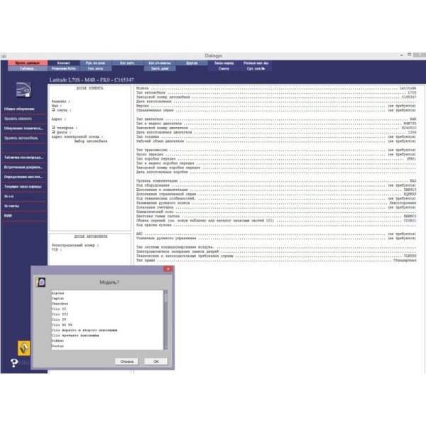 Примеры автомобилей, представленных в Renault Dialogys 4.90: