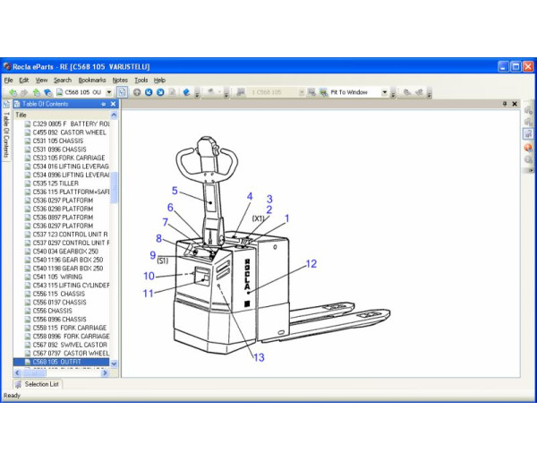 Rocla Forklift eParts — это специализированный электронный каталог оригинальных запасных частей для всей линейки складской техники Rocla. Программа ориентирована на специалистов по ремонту, снабженцев, логистов и сотрудников сервисных центров, обеспечивая быстрый и точный подбор компонентов для обслуживания и ремонта.