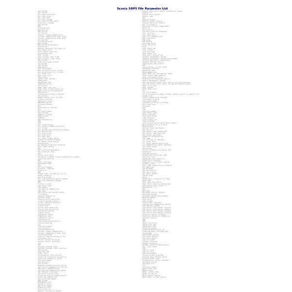 Parameter List – это список всех доступных параметров, которые можно изменить или запрограммировать с помощью Scania SOPS. Включает в себя детальные описания каждого параметра, его значения и возможные диапазоны.