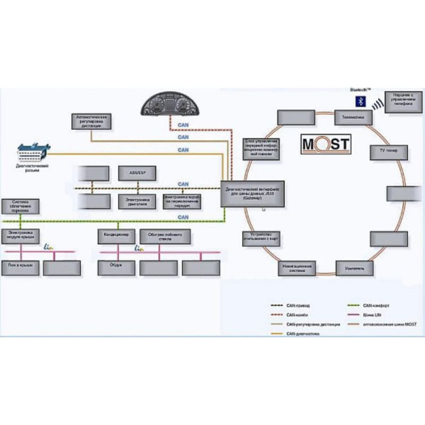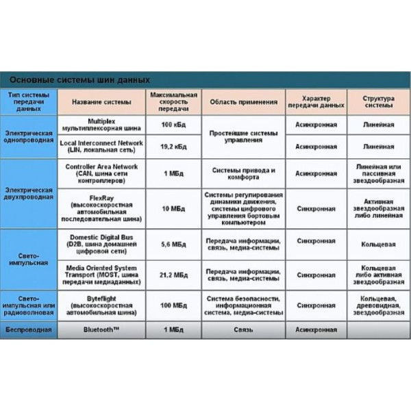 - CAN, LIN, K-Line, FlexRay и другие протоколы передачи данных.