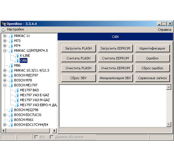 - Поддержка различных ЭБУ: OpenBox 3.3 работает с широким спектром ЭБУ, включая блоки от Bosch, Siemens, Magneti Marelli, Delphi, Январь, Микас, VS и других производителей. Программа особенно эффективна для работы с ЭБУ, устанавливаемыми на автомобили ВАЗ, ГАЗ, УАЗ, ЗАЗ, Hyundai, Chery, Geely и другие.